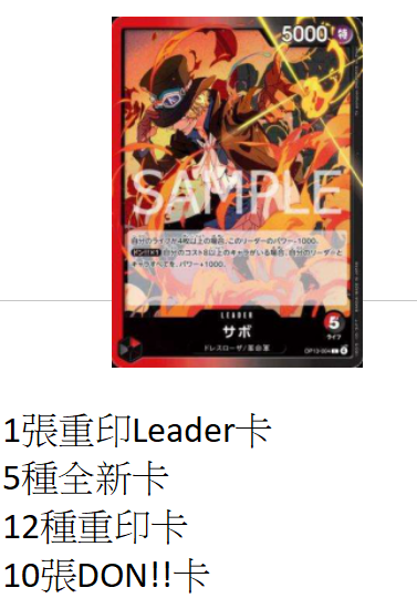 商品名稱: [Carddass] 海賊王咭牌遊戲 起始牌組 紅黑色 薩波 [ST-35]