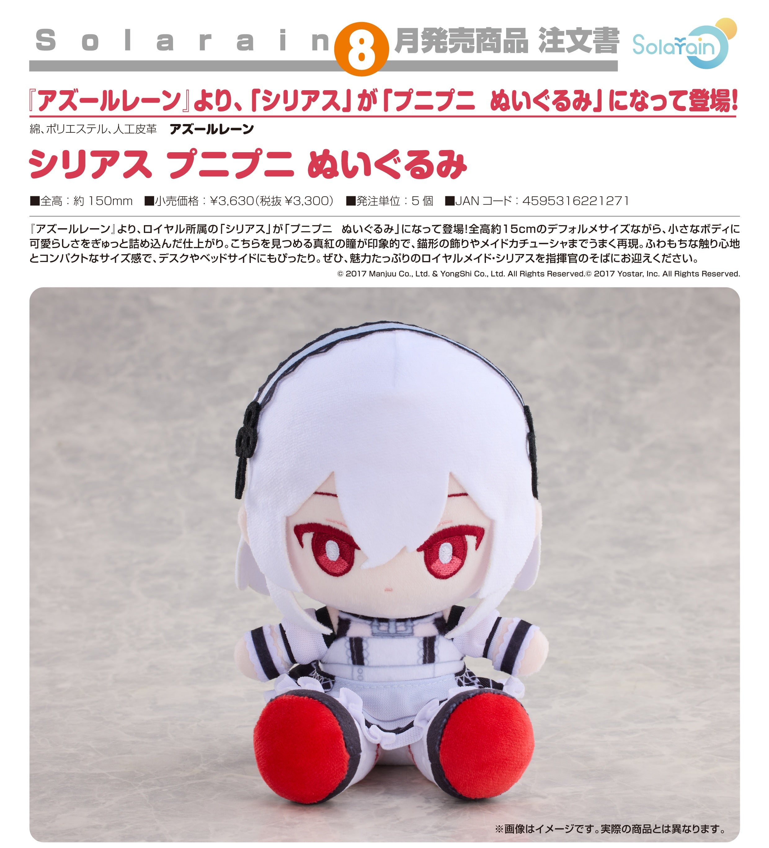 【預訂日期至11-Mar-26】Solarain - Q軟玩偶《碧藍航線》天狼星Sirius Y3300 (4595316221271)