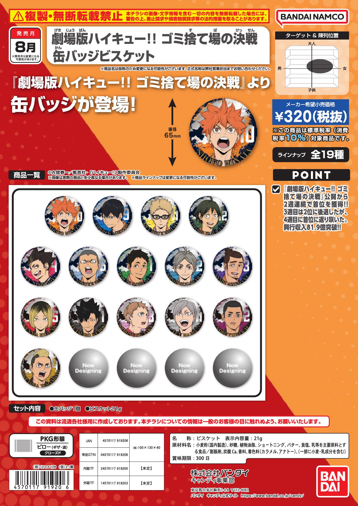 商品名稱:劇場版 排球少年!! 垃圾場的決戰 襟章+餅乾