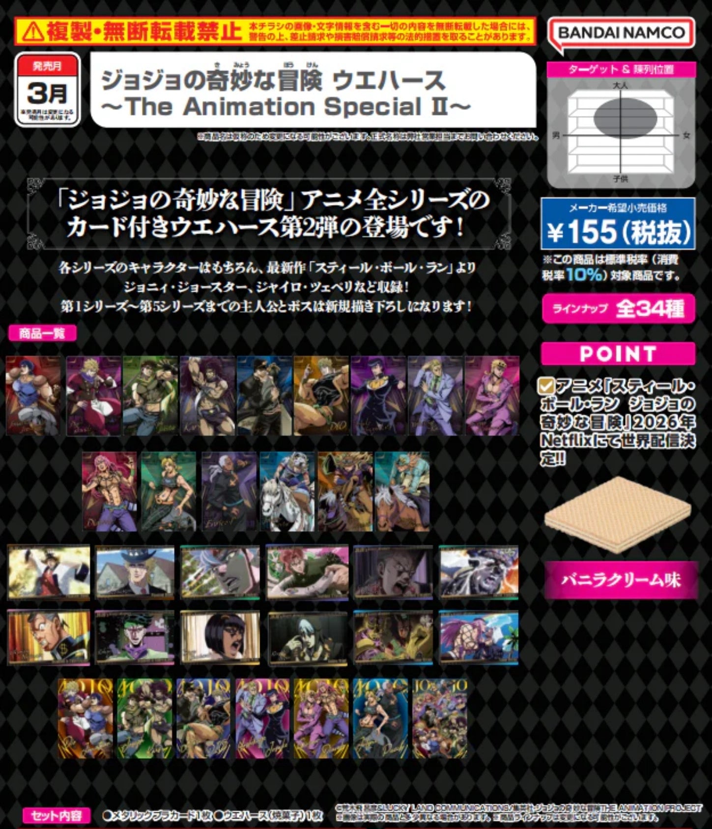 【預訂日期至06-Dec-25】Bandai - JoJo的奇妙冒險The Animation Special 威化卡 第2彈 Y155 (BOX OF 20) (4570117924613)