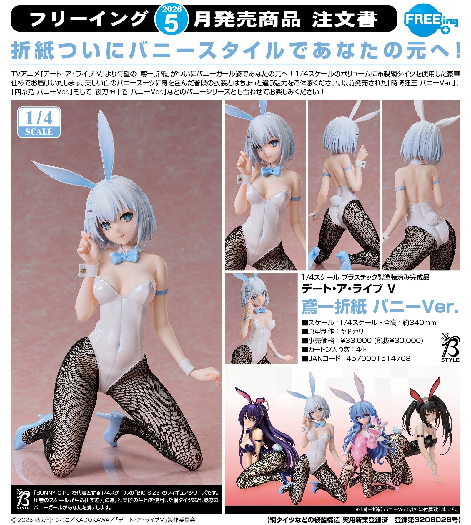 FREEing - B-Style 1/4《約會大作戰DATE A LIVE V》鳶一折紙 兔女郎Ver. Y30000 (4570001514708)