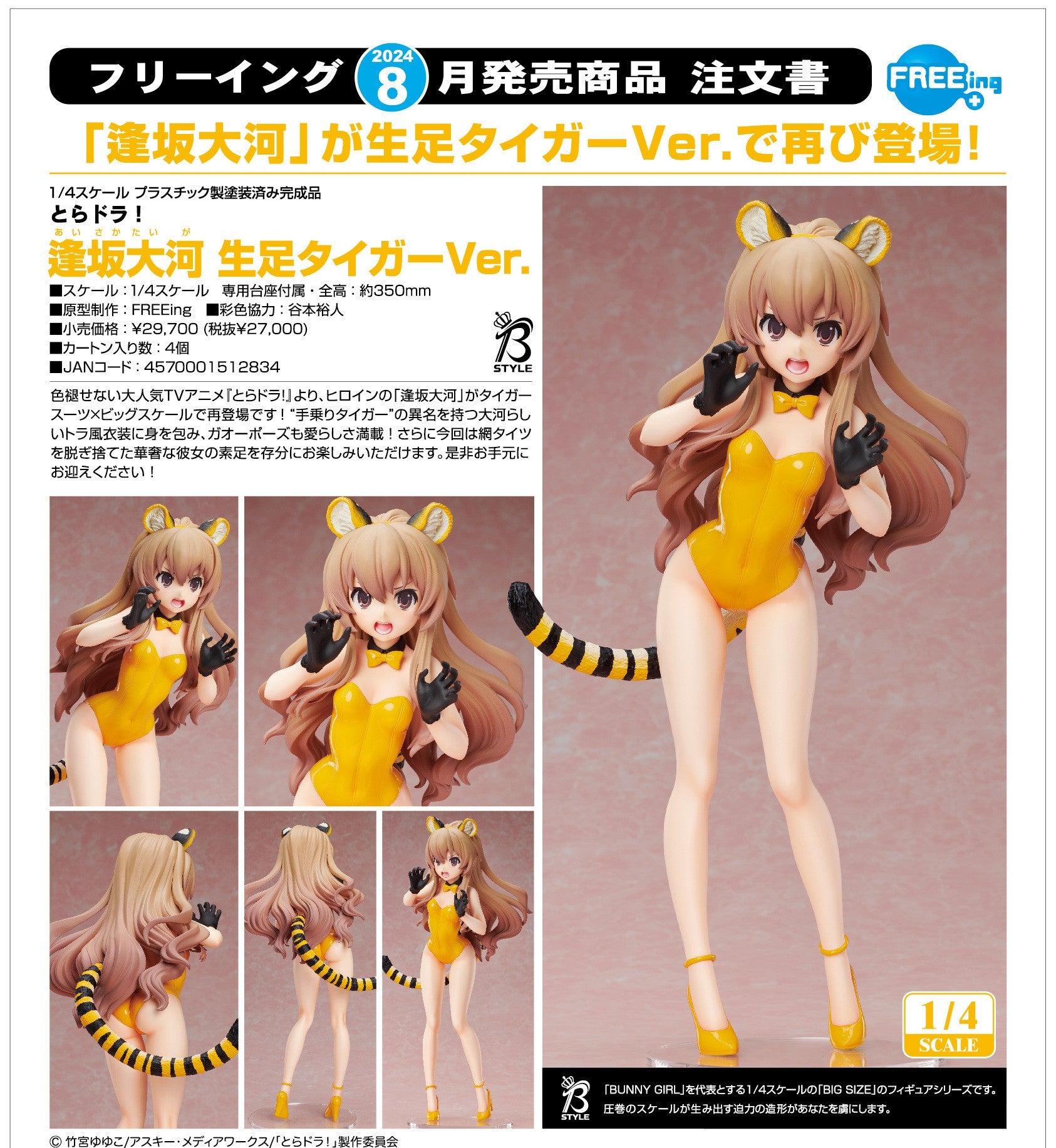 【預訂日期至29-May-24】FREEIng - 1/4 Taiga Aisaka: Bare Leg Tiger Ver. Y27000 (4570001512834)
