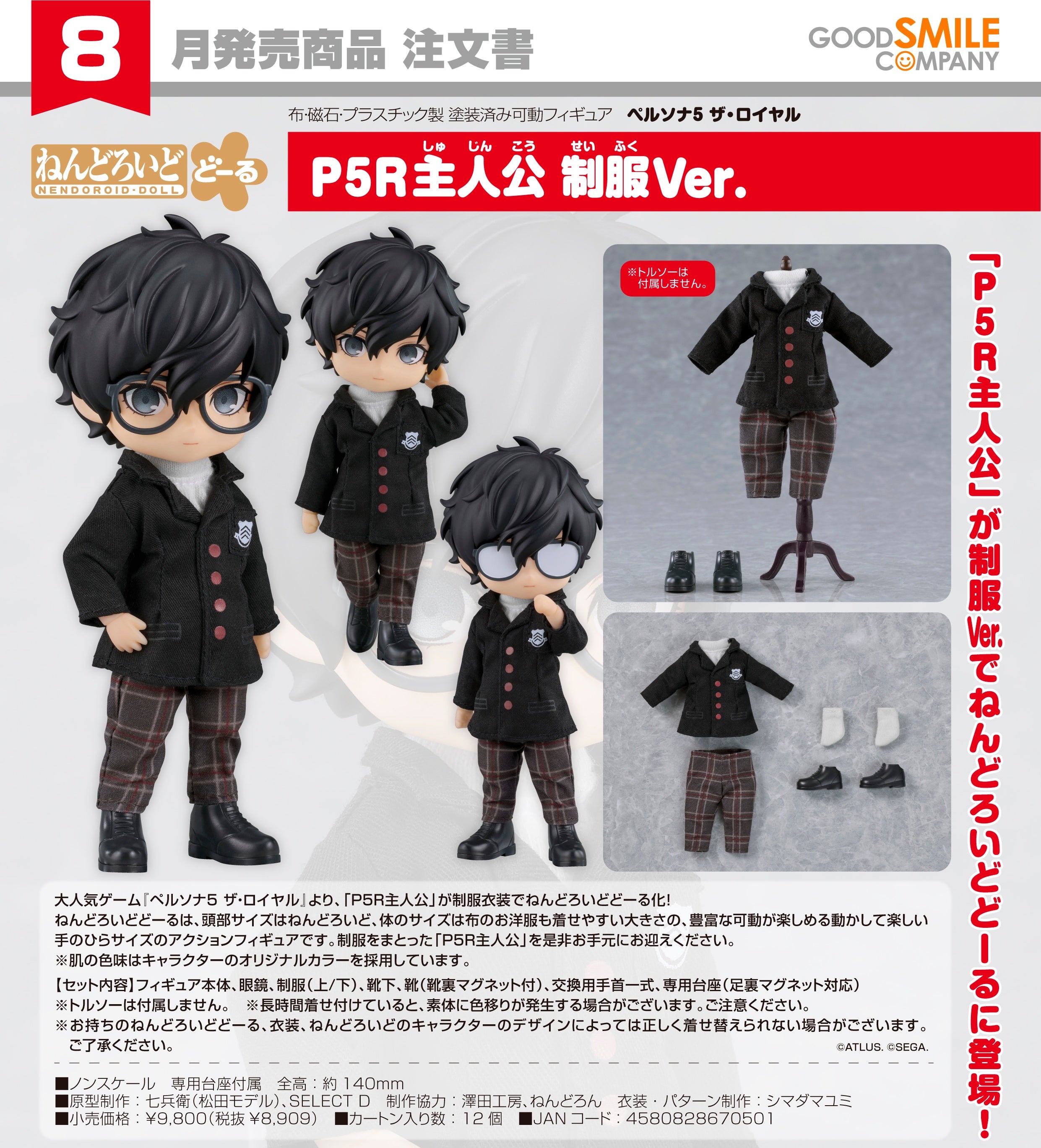 GoodSmile - Nendoroid Doll《女神異聞錄5 皇家版》P5R主人公「雨宮蓮」制服Ver. Y8909 (4580828670501)